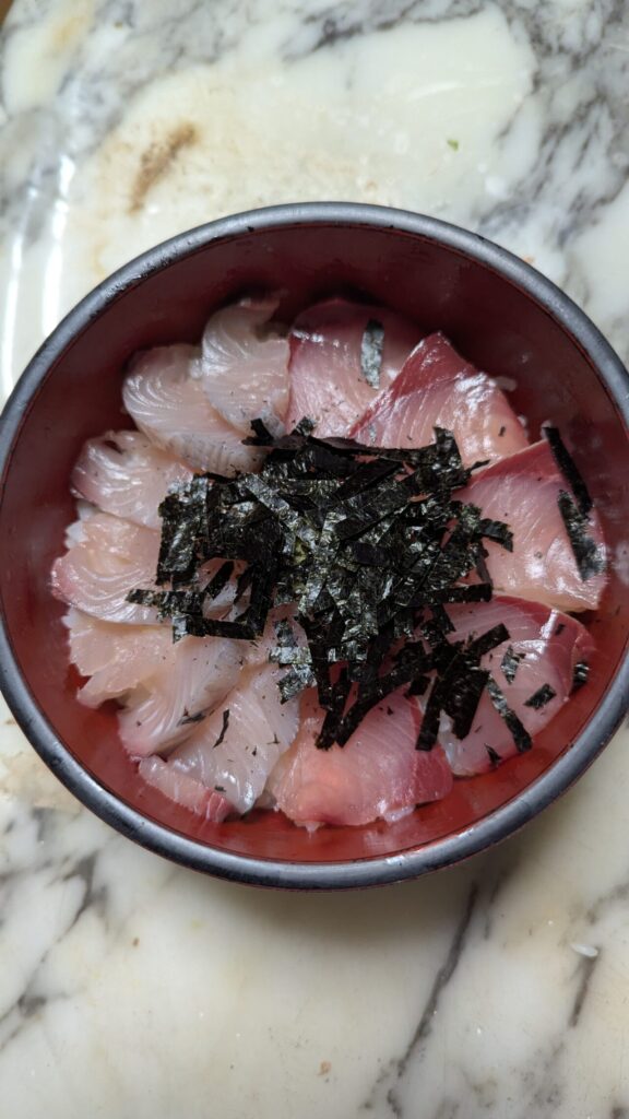 ワラサ君とサワラ君はお刺身にしていただきました。お友達にもおすそ分け完了しました。さらに、ワラサ丼・ワラサの握りと楽しめました。